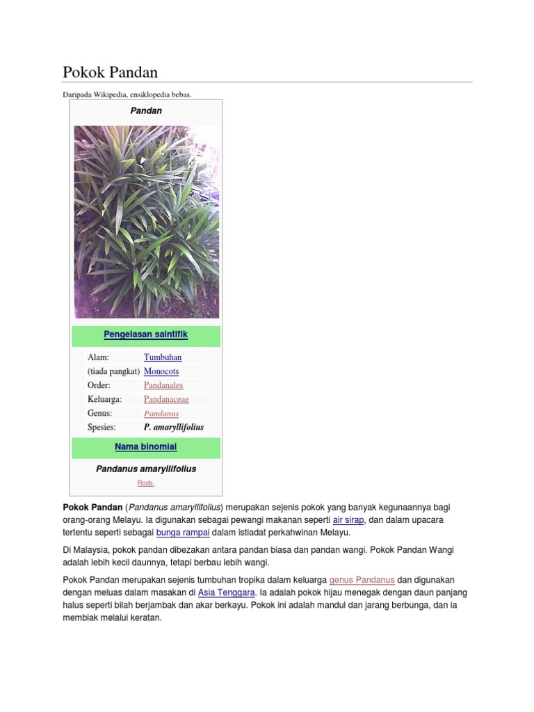 Product rating 419 5. Senarai herba menggunakan nama tempatan mengikut senarai abjad. Terdapat dua jenis pokok pandan yang boleh dijumpai di Malaysia iaitu.