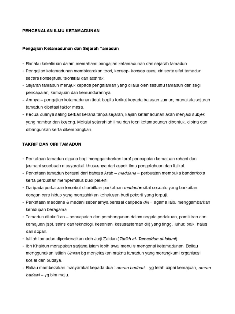 Nota Ringkas Titas Full Bab 1 Pengenalan Ilmu Ketamadunan 1 Konsep Ketamadunan Kefahaman Istilah Studocu